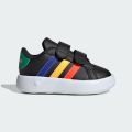 Если бы ваш малыш умел говорить, он бы сказал вам, как сильно ему нравятся эти Adidas. Туфли Гранд Корт! Застежки-липучки облегчают надевание обуви, а гибкая подошва из ЭВА порадует малышей. Ползают ли малыши, опираются на мебель или делают первые шаги, веселые цвета и классические три полоски вдохновят их на веселую жизнь. Этот продукт изготовлен как минимум на 20% из переработанных материалов. Повторное использование вторичных материалов помогает нам сократить количество образующихся пластиковых отходов и стать независимыми от истощающихся сырьевых ресурсов. Таким образом, мы также уменьшаем выбросы углекислого газа в атмосферу от нашей продукции.