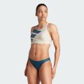 Соревнуйтесь с друзьями до следующей дюны или просто любуйтесь красотой местности, не вставая с пляжного полотенца. Выбор за вами в этом спортивном бикини от Adidas. Верх имеет съемные вставки, поэтому вы можете выбрать уровень покрытия. Логотип с тремя полосами подчеркивает спортивное происхождение. Модель выполнена из устойчивого к хлору материала с использованием переработанной пряжи ECONYL®.